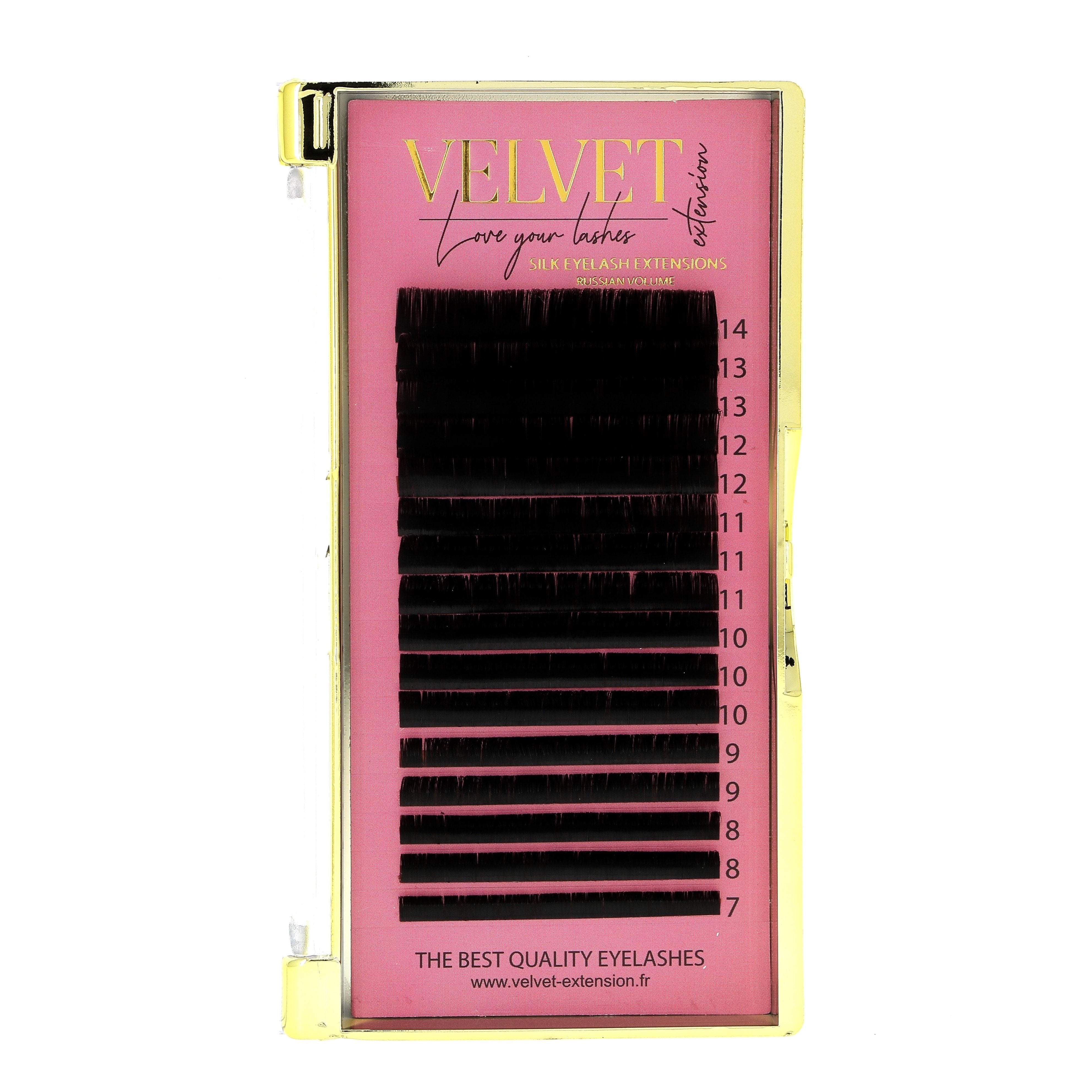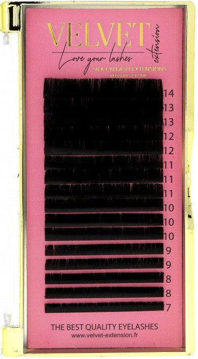 Les extensions de cils Volume Russe Velvet Extension en boîte MIX sont idéales pour la création de bouquets faits main et la réalisation de poses volume complètes. Fines, souples et intensément noires, elles permettent de réaliser des volumes 3D à 5D (et plus) avec légèreté, précision et une excellente rétention (lorsque le poids des bouquets est adapté au cil naturel).