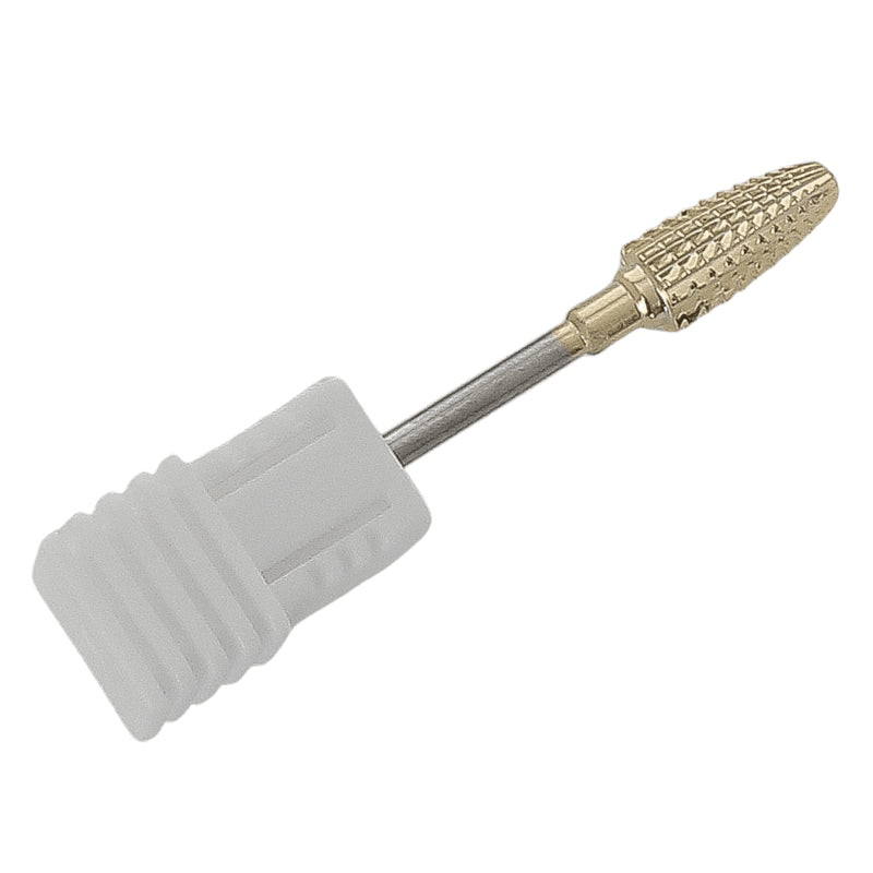 The success of a manicure, false nail or semi-permanent varnish application depends on careful cuticle care. This small, very thin skin is found at the base of and around the nail. It requires a great deal of attention. If any material, such as varnish or gel, is deposited on the cuticle, the application will not last. Removal of the artificial nail or semi-permanent varnish will then become inevitable. By correctly removing the cuticle, thanks to this gold carbide cylindrical sander tip, nail prosthesis services are perfectly successful. It's a must-have accessory and part of the nailart starter kit.